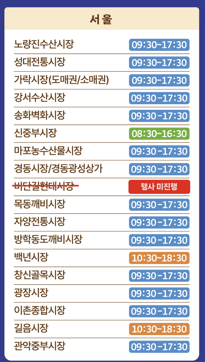 ▶ 환급행사는 참여하는 점포에 한해서만 가능합니다. 행사에 참여하는 점포 목록은 각 시장의 환급부스나 온라인에서 확인할 수 있습니다.